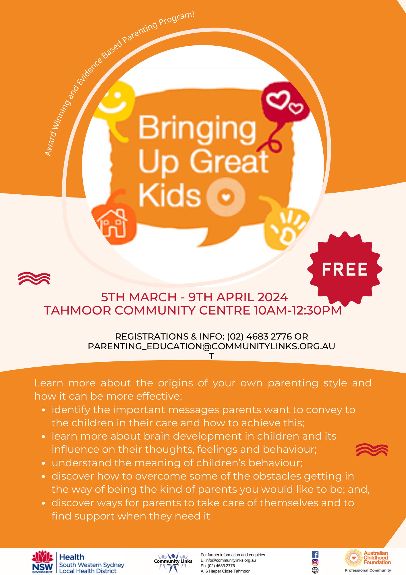 12 Mar Bringing up Great Kids Posted at 10:00h in Courses/Workshops by Community Links Bringing up Great Kids